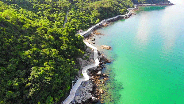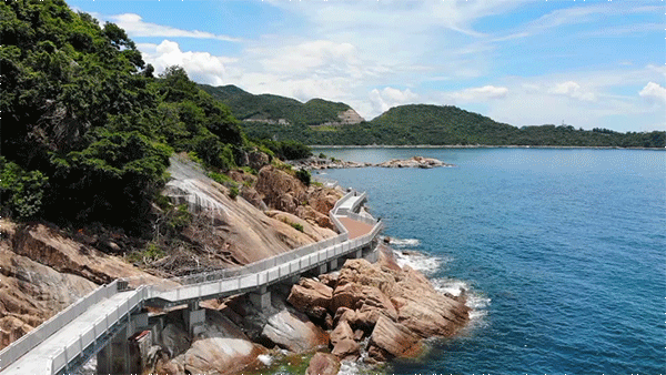 沿途步道、景观平台、大栈桥、石拱桥、大梅沙沙滩