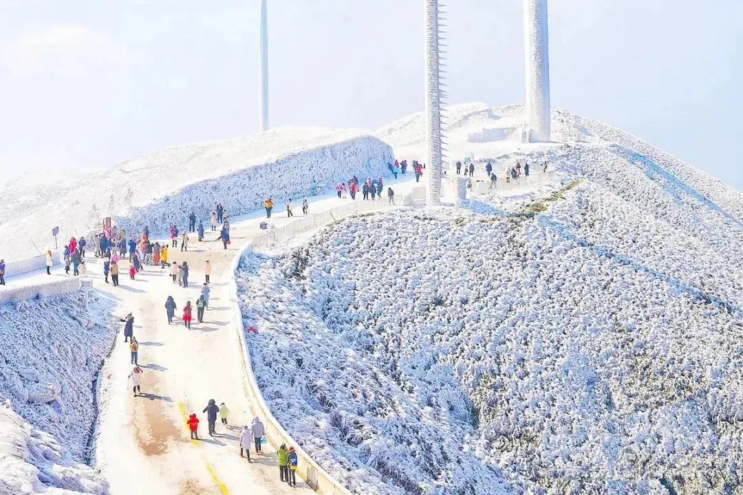 粤湘一脚踏两省有个景区,可赏雾凇冰挂观云海,被称“南方雪乡” ,它就是云冰山。