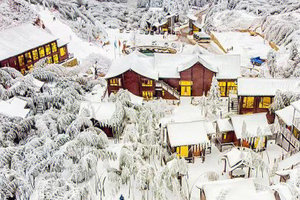 这座山的平均海拔1200米,可坐接驳车上山,也可以沿木阶梯徒步上山,共520阶,爬上去大概要1小时左右。你可以一边爬梯一边欣赏山中美丽的雾凇冰挂风景。