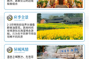【应季全景】线路涵盖了当地大部分热门和小众景点,2-3月特别前往界头镇看醉美油菜花,只为在不同季节带您领略不同风景。