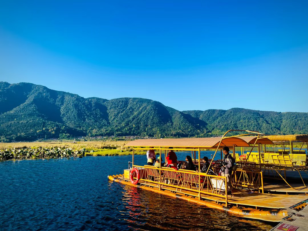 下午前往【北海湿地】景区(备注:2月15至3月15号期间的团期则改去当季的界头油菜花海景点,其他时间安排游玩北海湿地含游船。)北海湿地四周群山环绕,景色优美,物种丰富。这里的水面大部分被一层厚约一米的草甸覆盖,上面生长着繁茂的北海兰、苇席草、茭菰草、漂草以及其他各种野草和野花。我们乘坐游船(费用已含),横穿北海湖,欣赏湿地风光。晚上入住腾冲县酒店。
