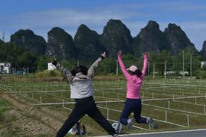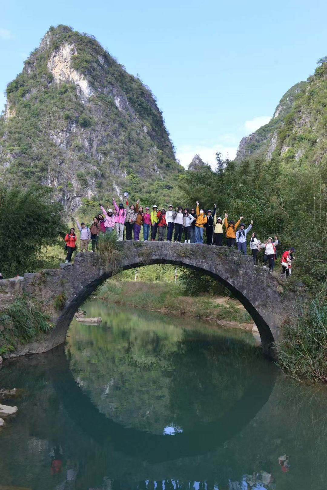 10:00 到达【英西峰林】,领队带拉伸之后,开始英西峰林徒步,欣赏“广东小桂林,走过没有桥墩,完全有岩石构成的【小赵州桥】,感受永丰古庙的沧桑,走进峰林之间的【英红九号茶园】茶树跟峰林相映,韵味十足