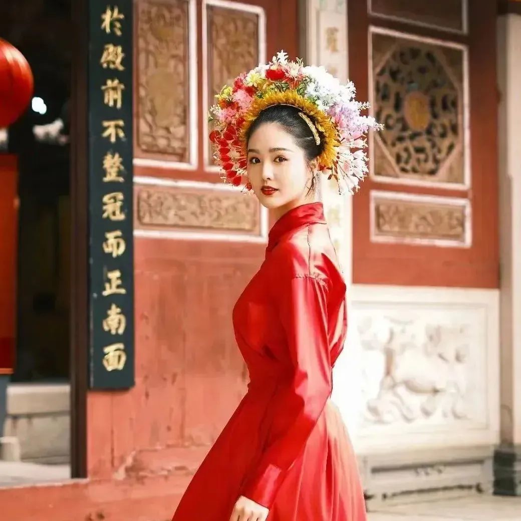 蚵壳厝建筑和头戴簪花的蟳埔女