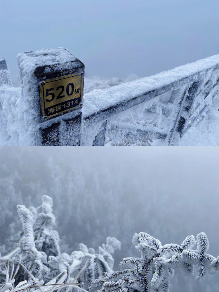 粤湘一脚踏两省有个景区,可赏雾凇冰挂观云海,被称“南方雪乡” ,它就是云冰山。
