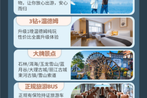 根据行程时间早晚,导游可自行安排行程游览的先后顺序。由于云南线操作特殊性,客人同意旅行社在不降低服务标准的前提下,可以根据实际转并团