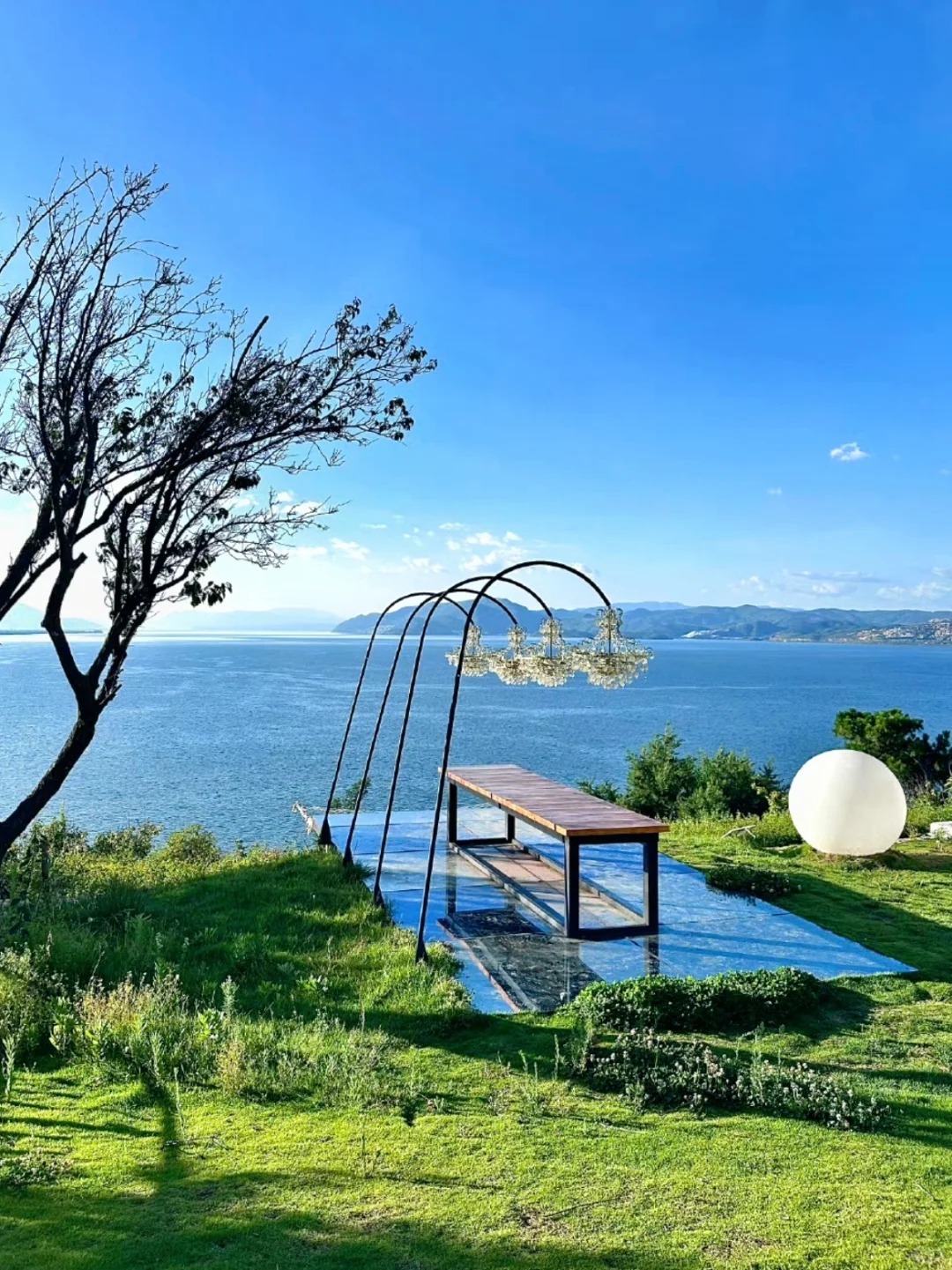 车轮滚动,带起微风,吹拂着脸庞,那是来自岁月的温柔抚摸。马车途径万亩稻田,一路田园风光,伴随着哒哒哒的马蹄声到达网红打卡地《我在洱海有块田》。