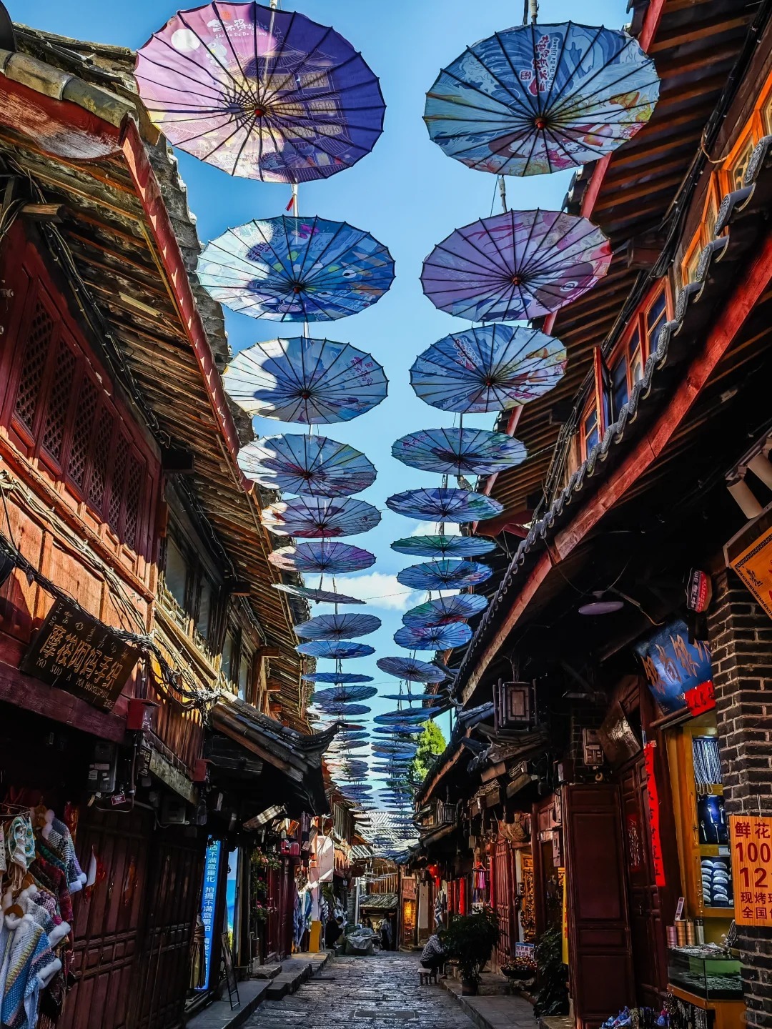 1、现文巷:挂满油纸伞的复古小巷,适合民族写真