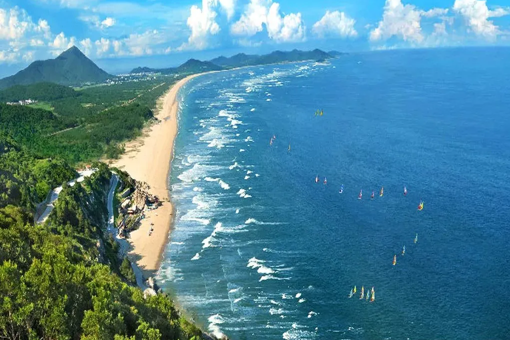 海岸线曲折多湾,三面环海,海滩长约1.25公里。