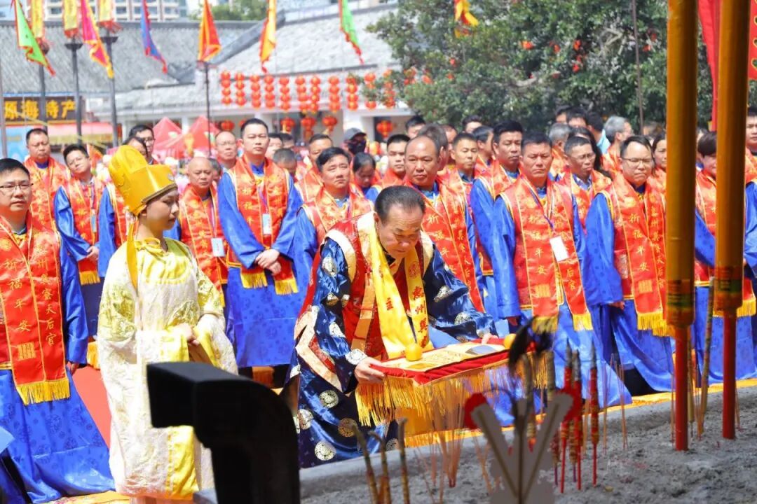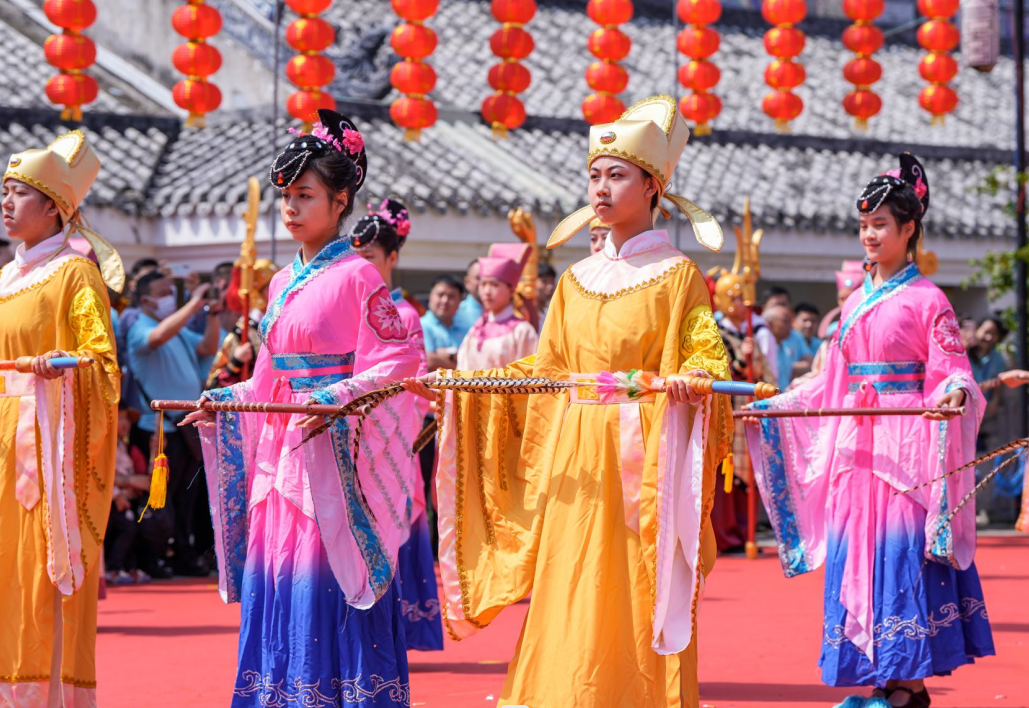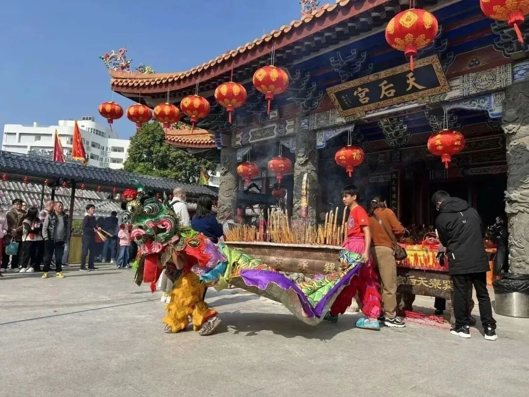 活动现场还举行了盛大的祭典仪式,舞狮、唱惠东渔歌、汉服巡游等节目轮番上演,给观众带来一场视听盛宴。