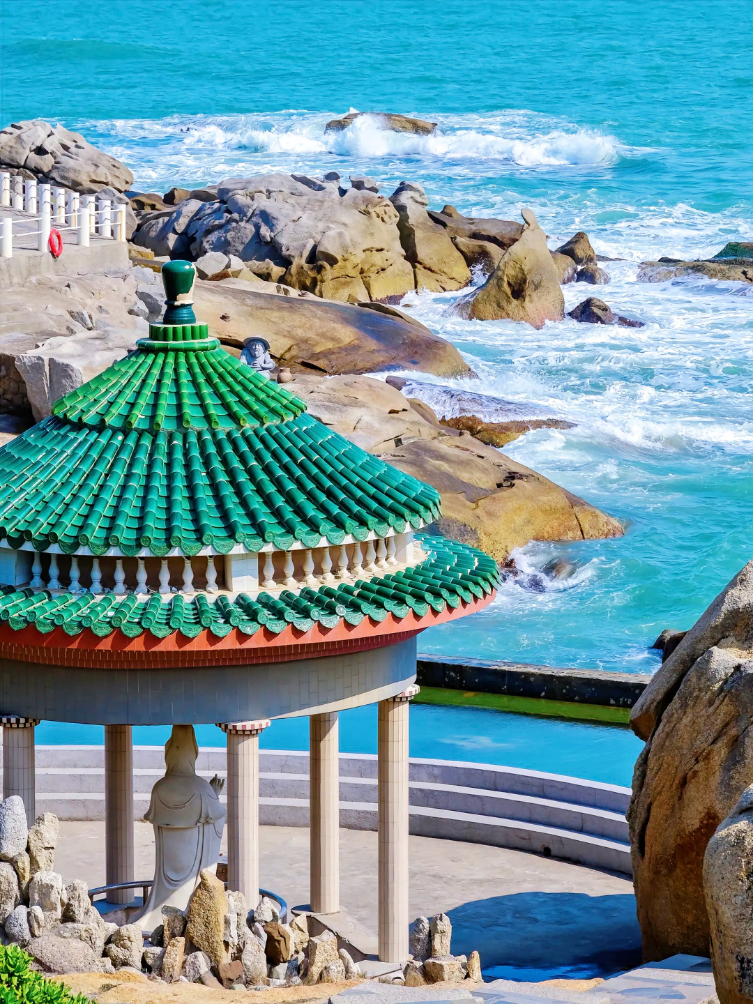 13:30 抵达南海寺停车场,领队带领大家前往打卡【网红古堡】和【南海寺】,海边+欧式建筑+废墟场景+寺庙,这不可多得的拍照环境让集美们大呼过瘾,还有南海寺【石头船】【观音像】【五子如来佛】等美景,让你刷爆相机内存,南海寺还是汕尾唯一的国家级海洋公园(两个景点挨在一起的)。