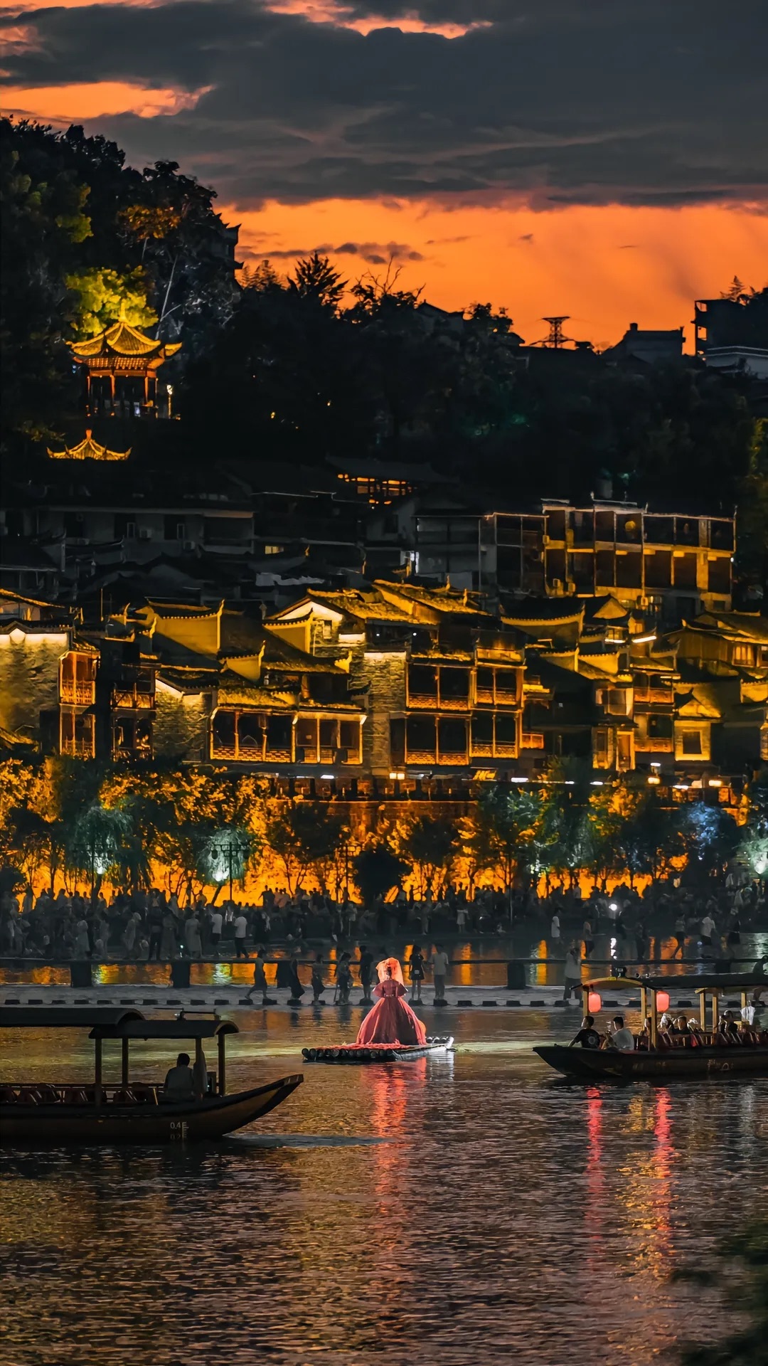 14:00 左右抵达凤凰古城酒店,安排入住,入住后结伴进入古城游玩,一定要站在沱江上听上一曲《此生不换》,感受仙剑世界的长安城。