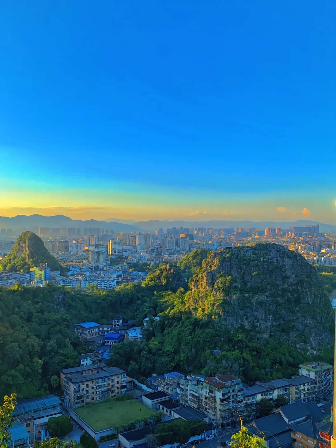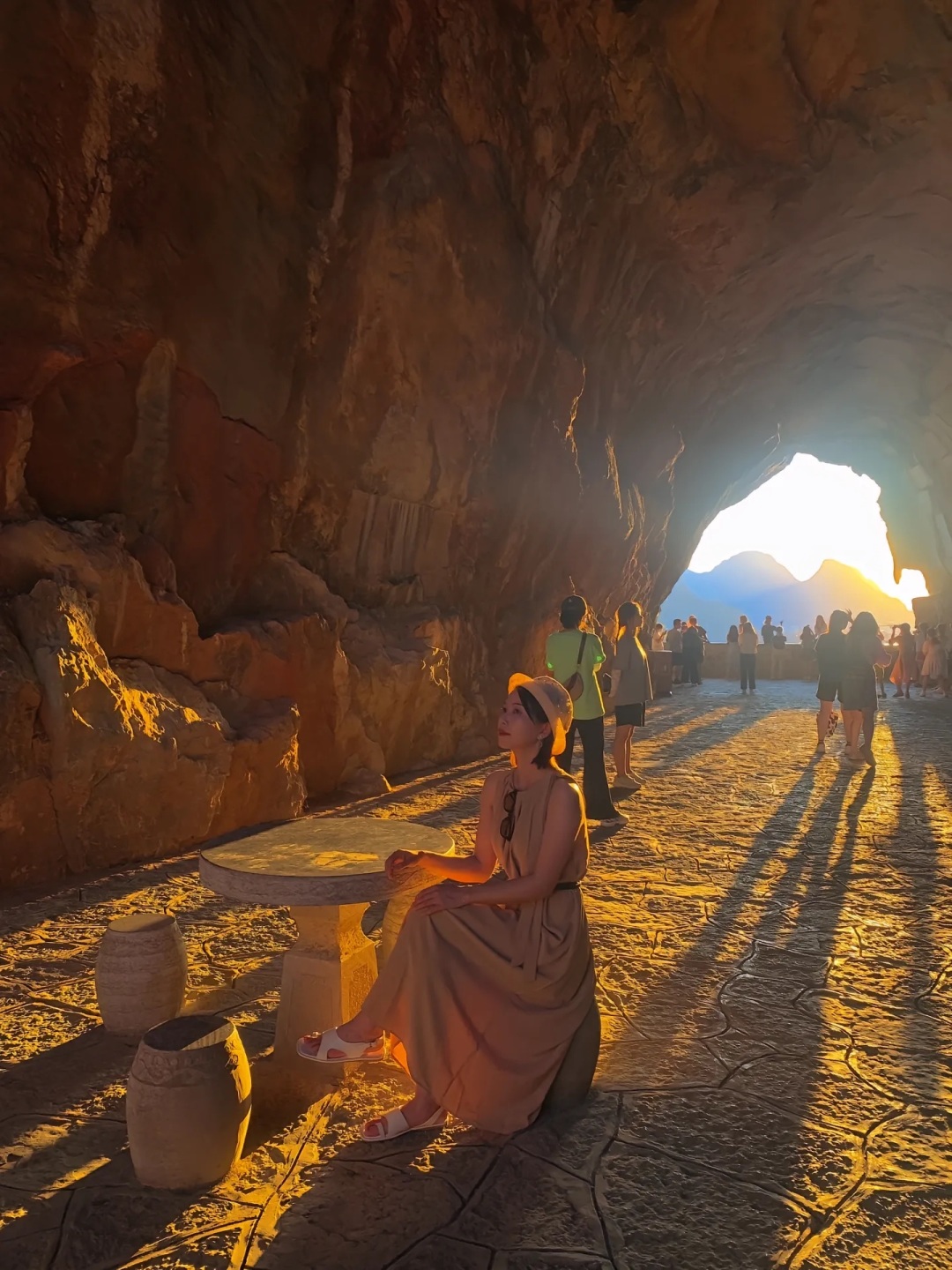 来叠彩必来仙鹤洞,洞穴日落将城区和日落完美结合,人像剪影超唯美