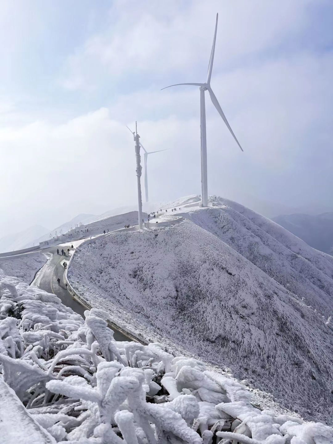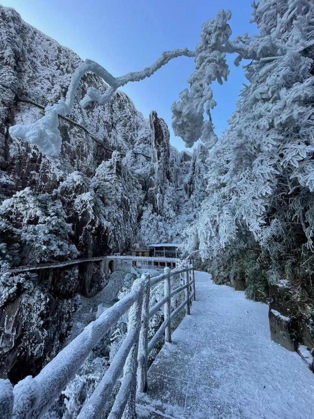 阶梯、栈道上也铺满冰霜,仿佛通往天上人间。
