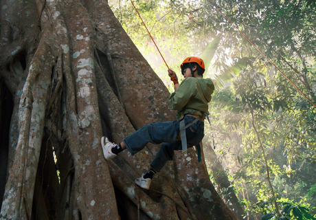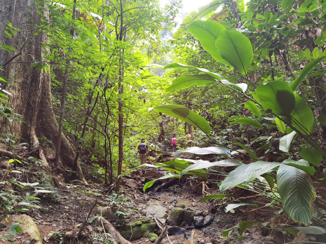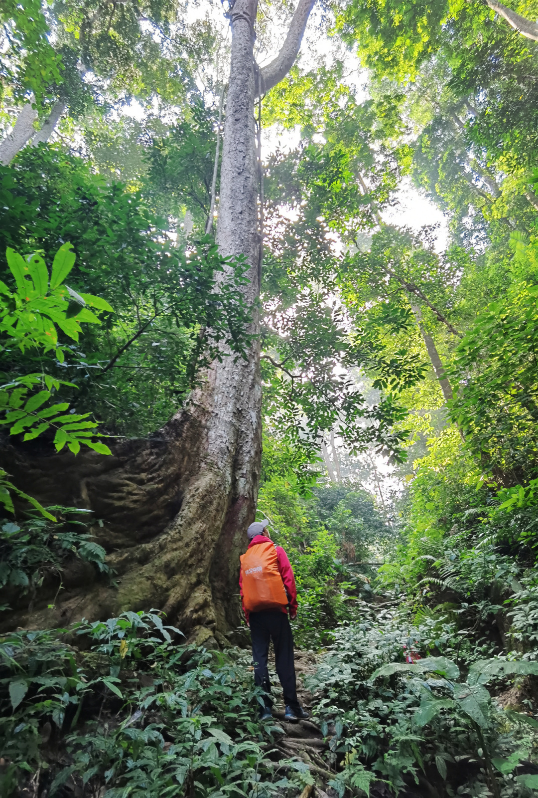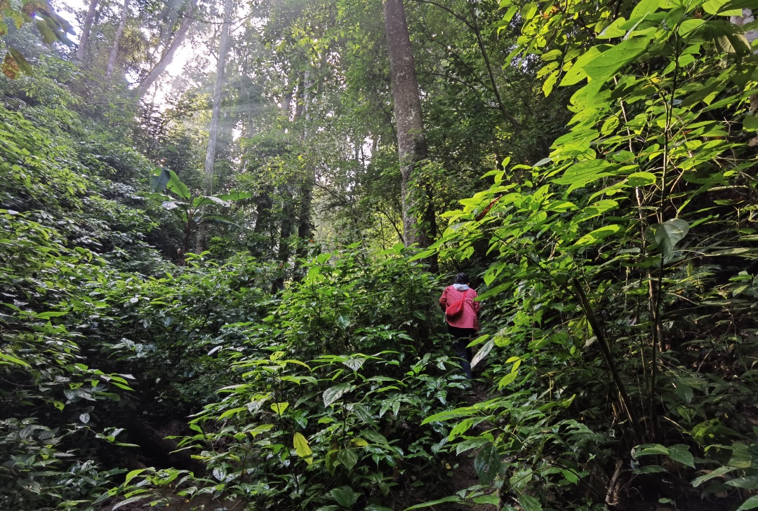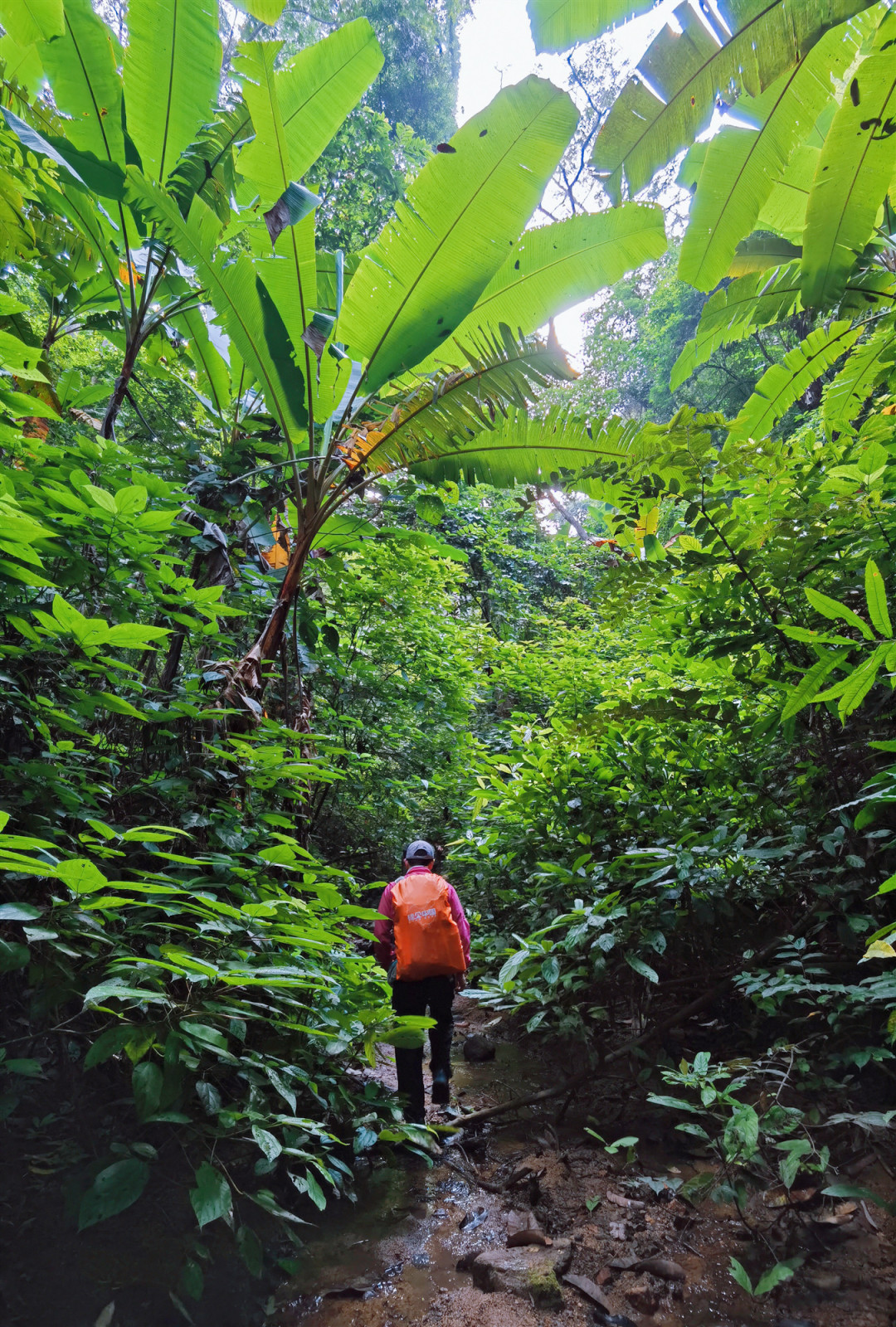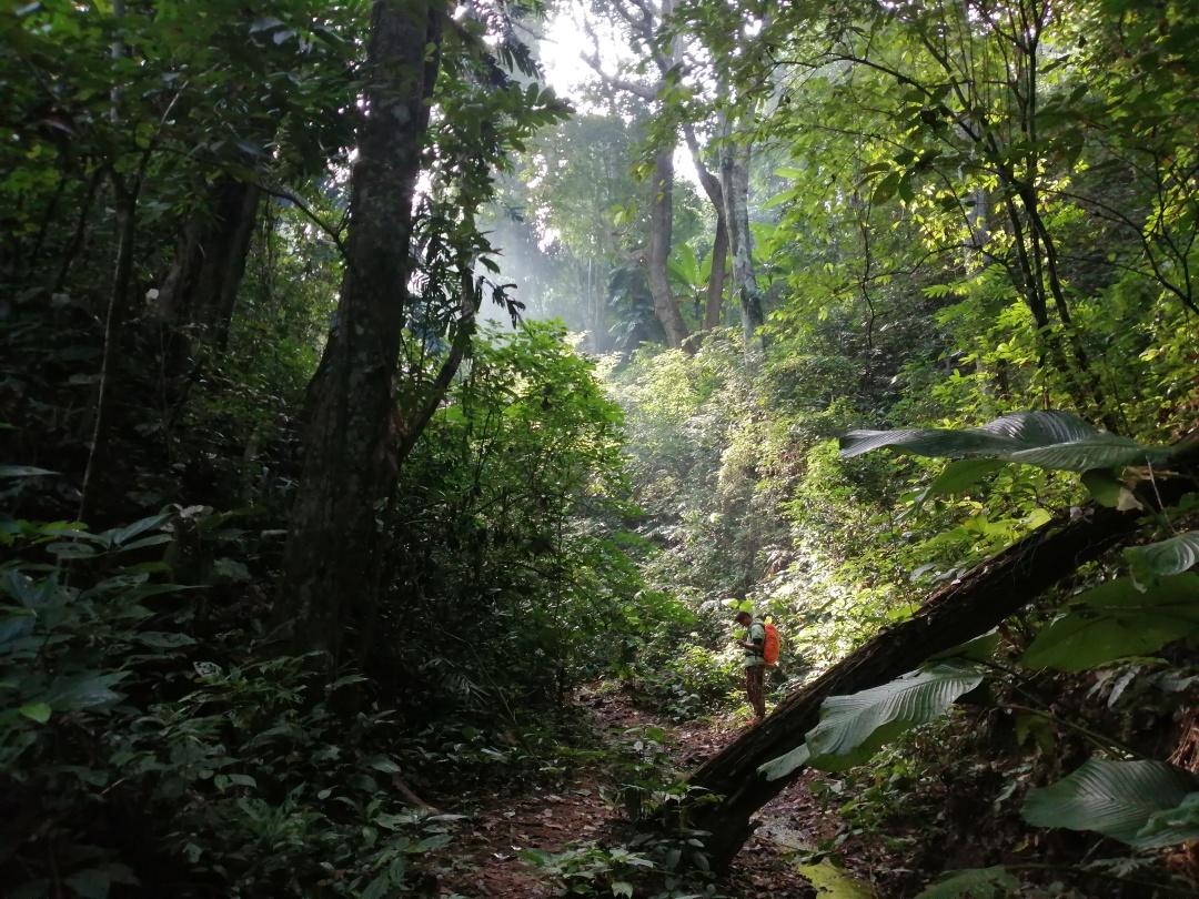 视线被不同层次的绿色铺满,湿润的空气从裸露在外的手臂、脚踝处入侵,不时的鸟鸣让雨林显得更加肃穆,脚下的动作不由得放缓到极限。