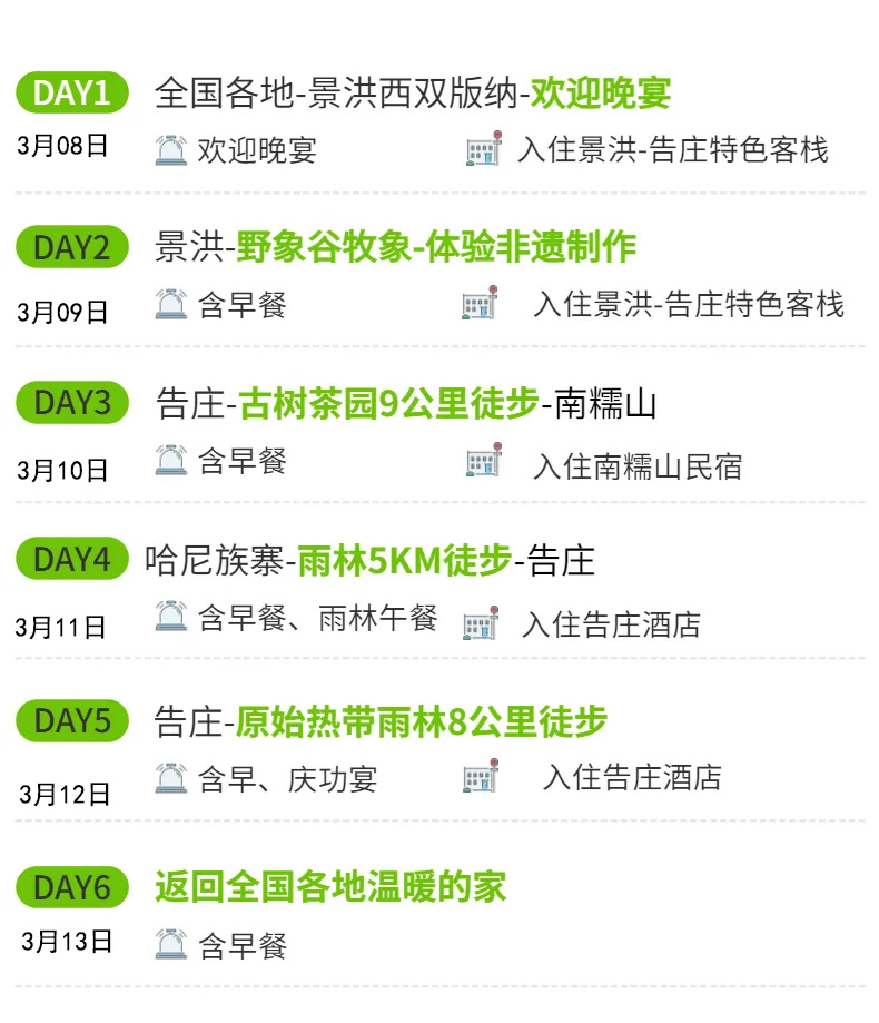 餐:早餐√ 午餐√ 晚餐× 宿:景洪酒店