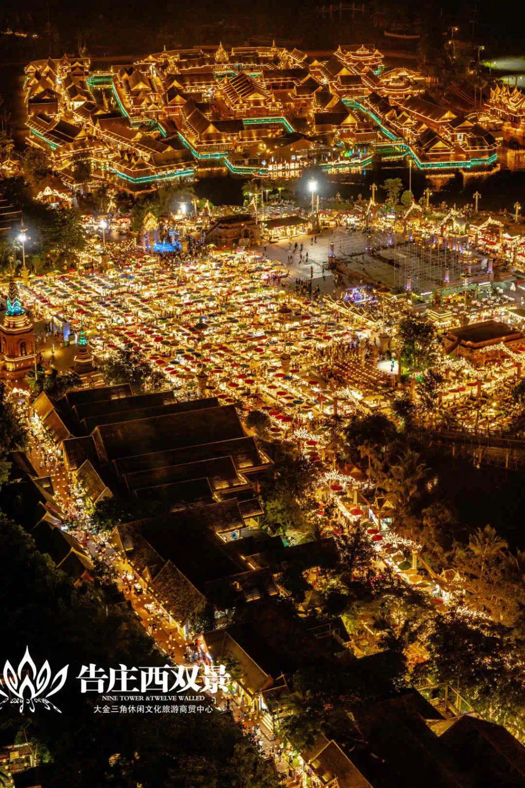 告庄西双景为傣语,汉意为“九塔十二寨”,旨在重现古时景洪盛景,打造一个繁华昌盛的“景洪城中之城”。