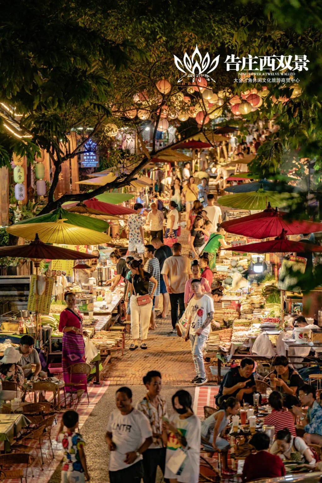 白天的西双版纳是静谧的,到了晚上,入夜的告庄西双景会开启狂欢模式。