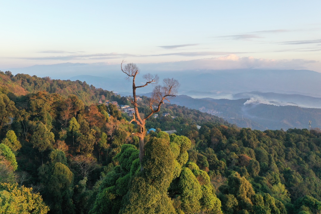 依山势而成的各色茶树,间或穿插在雨林茂密繁盛的植物间,一种蓬勃的、向上的生命力是生活在都市的我们从未感受过的野蛮生长的纵深力量。