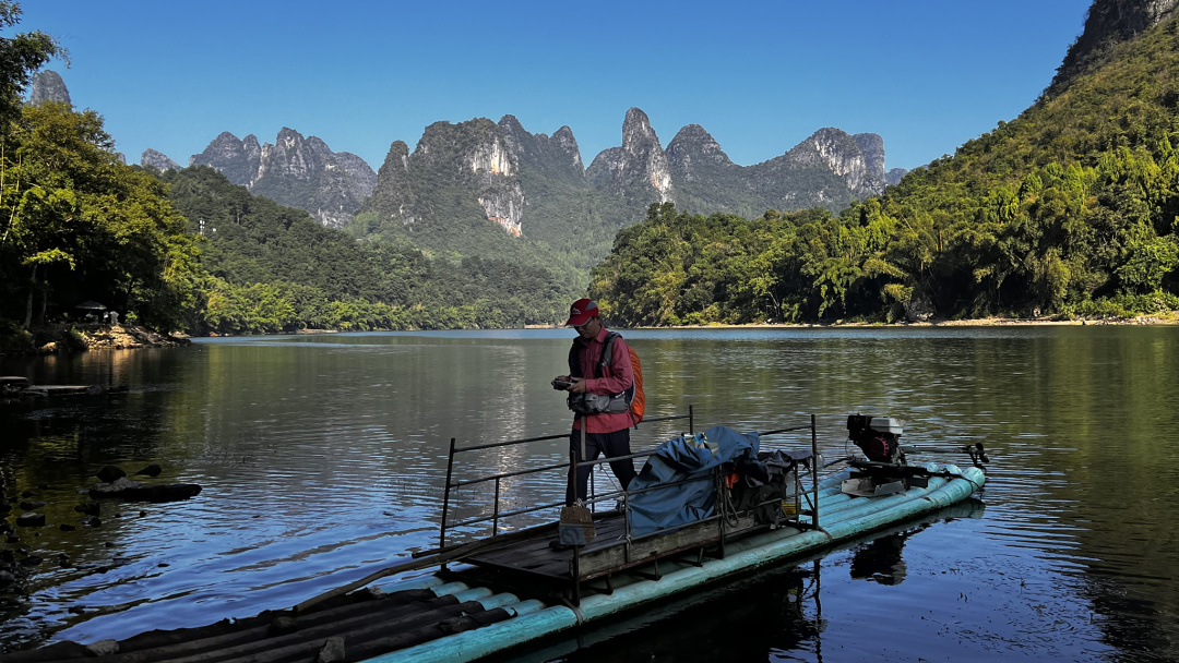 清晨从大圩古镇的青石板路出发,沿着漓江东岸步道漫步,穿梭于果树与竹林之间。途经渡船头需搭竹筏过江,抵达草坪乡后继续沿江前行。到达半边渡时,陡峭山崖阻路,需联系当地船工摆渡,才能继续行程。一路可见碧水萦回、奇峰倒影的经典喀斯特景观。最终抵达杨堤乡江边营地,这里依山傍水、静谧自然,今天我们住进这里的山水画廊里。这段行程全程约26公里,以硬化步道为主,约需7-8小时完成,沿途经过多个村庄可进行补给,是感受"人在画中游"的经典徒步路段。