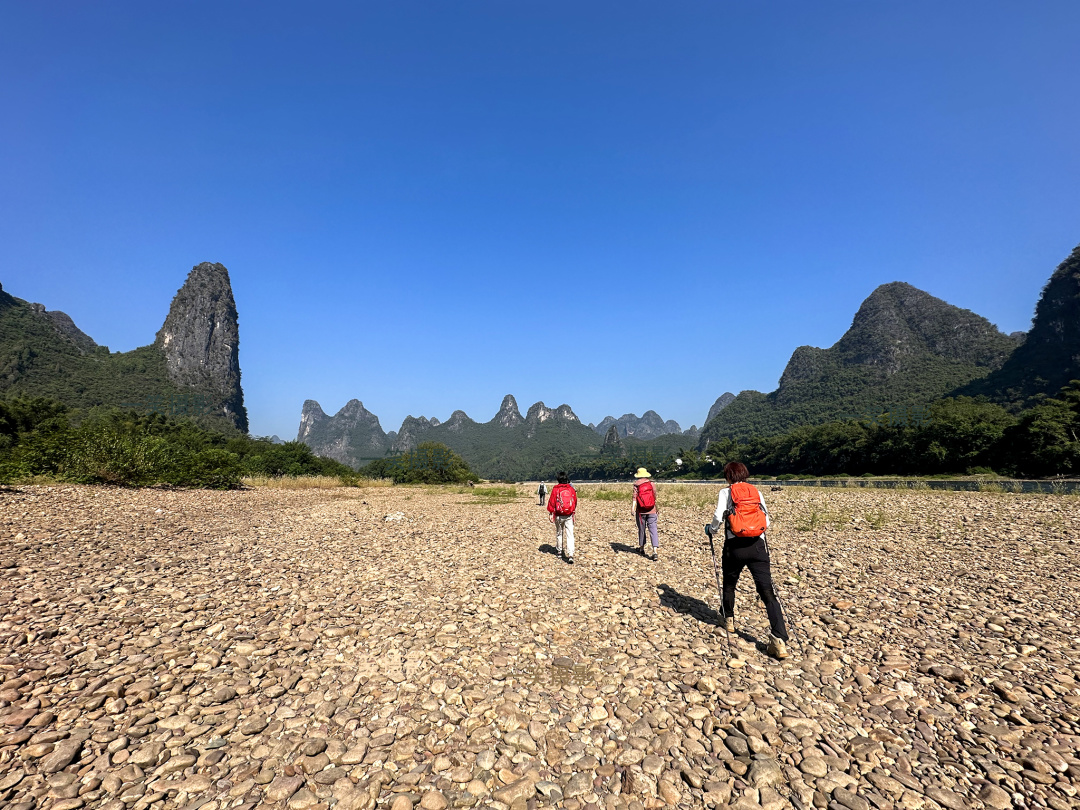 早餐后,8:30 全员酒店广场集结,拉伸,正式开启“漓江100徒步大会”的行程!从象山公园离江边开始徒步,途径斗鸡山、南溪山对岸江景、樟木村、龙门村(有小卖部补给)、父子岩(古人类遗址-年代跨越新石器时代晚期和商周时期),最后到达大圩古镇。
