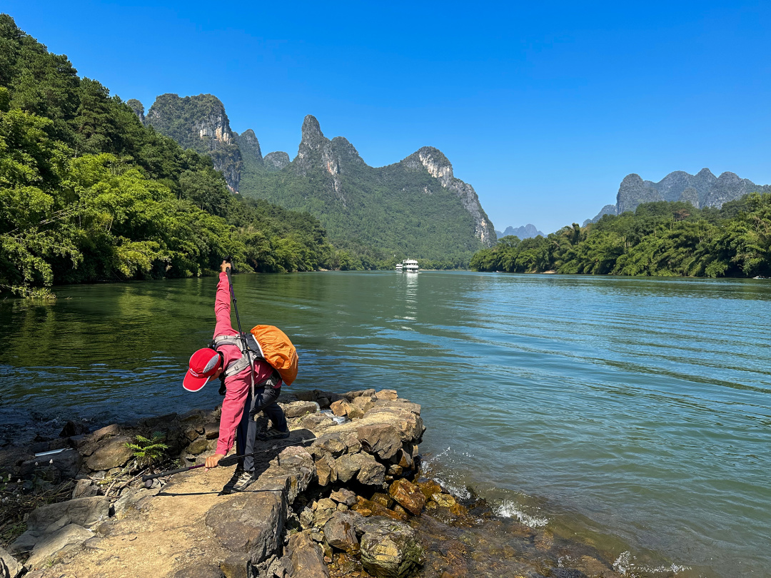 漓江100公里徒步,是一条从桂林象鼻山出发、沿江走到阳朔西街的经典路线。人们常说“百里漓江,百里画廊”,走在这条路上,你会真切感受到这句话的分量:两岸喀斯特峰林连绵起伏,江水清澈蜿蜒,途中经过大圩、杨堤、兴坪等古镇古村,每到一处都能歇脚、补给。