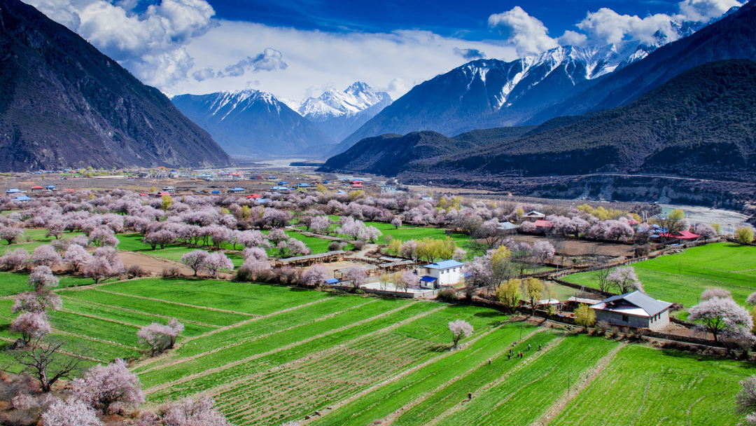 这个在春天被漫野桃花掩映的小小村庄,悄无声息的隐身在青藏高原群山褶皱中祥和安逸,与世无争,被南迦巴瓦环抱,被雅鲁藏布拥吻着,神灵护佑着,大自然恩泽着!