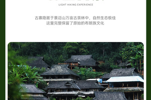 晨光破晓,在翻涌的云海之上迎接第一缕金光,这是景迈山赠与的壮丽序章。 当朝阳为无边的云毯染上金红,我们便踏着晨露,步入万亩古茶林的深处。徒步于苍劲的千年古茶树之间,呼吸着浸润茶香的空气,仿佛每一步都在与历史对话,触摸着这片土地绵延千年的生命脉搏。