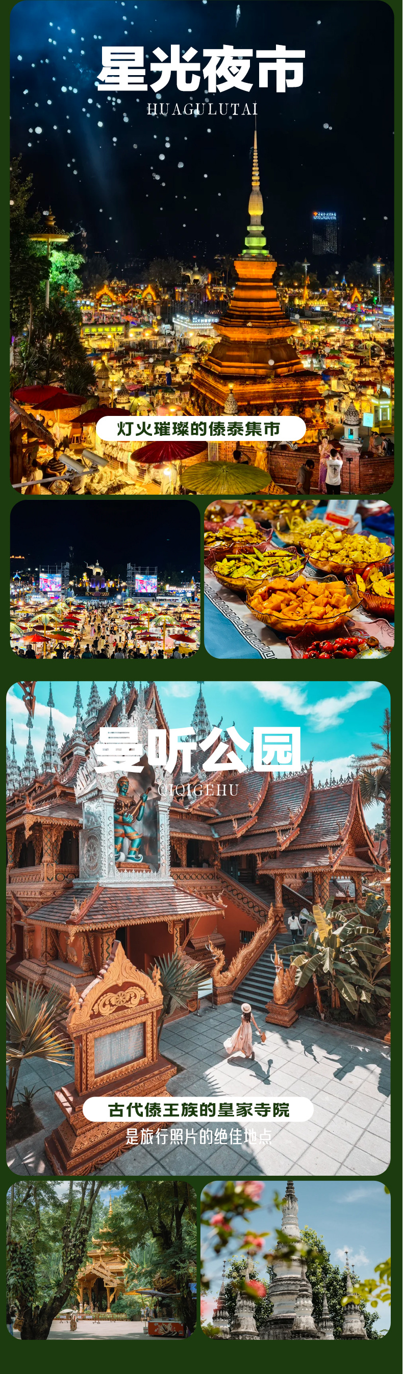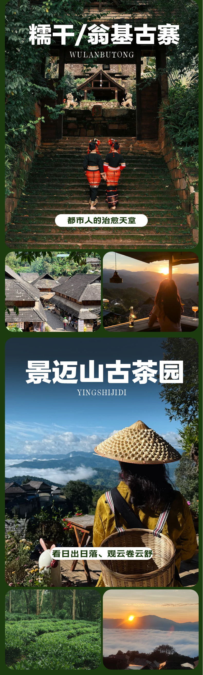 随着夕阳西下,旅程的终点又回到了那片热情洋溢的乐土——西双版纳。从云海仙境到古老茶山,从神圣亭阁到繁华傣乡,这一日的穿越,饱览了天地的造化、人文的传承与生命的繁茂,为身心画下了一个圆满而丰盈的环线。